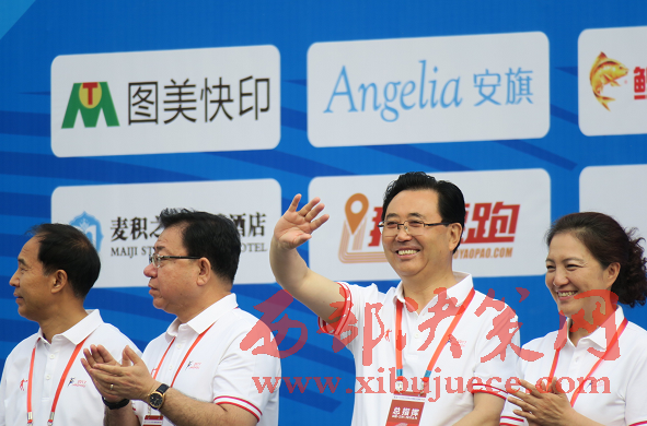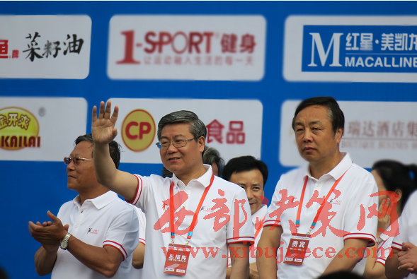 蘭州市委副書(shū)記、蘭州市政府市長(zhǎng)欒克軍向運(yùn)動(dòng)員揮手致意(杜杰 攝)