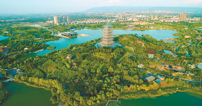西安浐灞生態(tài)區(qū)鳥瞰。強(qiáng)宏攝