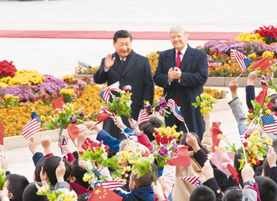 11月9日,國家主席習(xí)近平在北京人民大會堂東門外廣場舉行歡迎儀式,歡迎美利堅合眾國總統(tǒng)唐納德·特朗普對中國進行國事訪問。(記者 李學(xué)仁 攝)