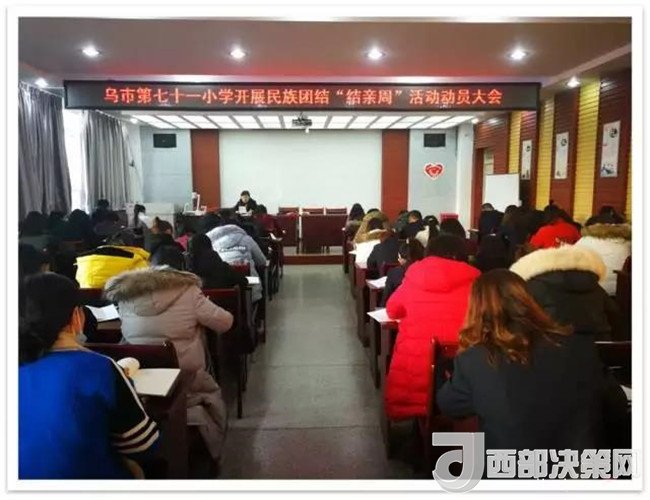 西部決策網(wǎng)-西部大開發(fā)訊(許鹍飛 通訊員 宋國平 李玉彤)為積極響應(yīng)自治區(qū)民族團結(jié)“結(jié)親周”活動的號召,烏魯木齊市第七十一小學(xué)迅速行動,緊鑼密鼓進行周密安排部署。2017年12月11日上午10點,民族團結(jié)一家親“結(jié)親周”活動動員大會在學(xué)校五樓會議室召開。黨支部書記兼校長韓莉同志給全體在職人員傳達相關(guān)會議精神,宣讀學(xué)校民族團結(jié)一家親“結(jié)親周”活動實施方案。并對本次活動做了全面的安排部署,讓黨員干部盡快趕到親戚家中,同吃同住同勞動同學(xué)習(xí),深入宣講黨的十九大精神,加強各族干部群眾交往交流交融,為實現(xiàn)新疆社會穩(wěn)定和長治久安凝心聚力。