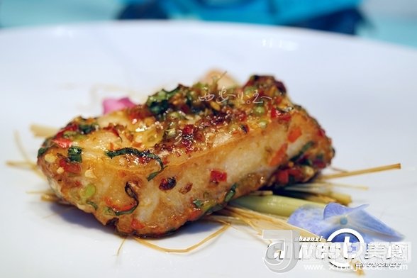 銀鱈魚用來自西雙版納的香料腌漬后,進行烤制,風(fēng)味獨特,鮮中帶辣。