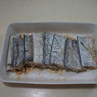 3. 將帶魚段撿出,略微傾斜碼放到盤子中。
