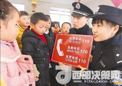 12月25日,浙江省臺州市公安局椒江分局下陳派出所民警深入轄區(qū)中小學(xué)校、幼兒園,開展防拐騙、消防安全、交通安全等防范教育,通過講解安全小常識、發(fā)放防范宣傳資料等方面知識,提高學(xué)生和幼兒園小朋友安全意識和自我防范能力。圖為民警在教幼兒園小朋友如何撥打緊急求助電話。何文斌 攝(人民視覺)