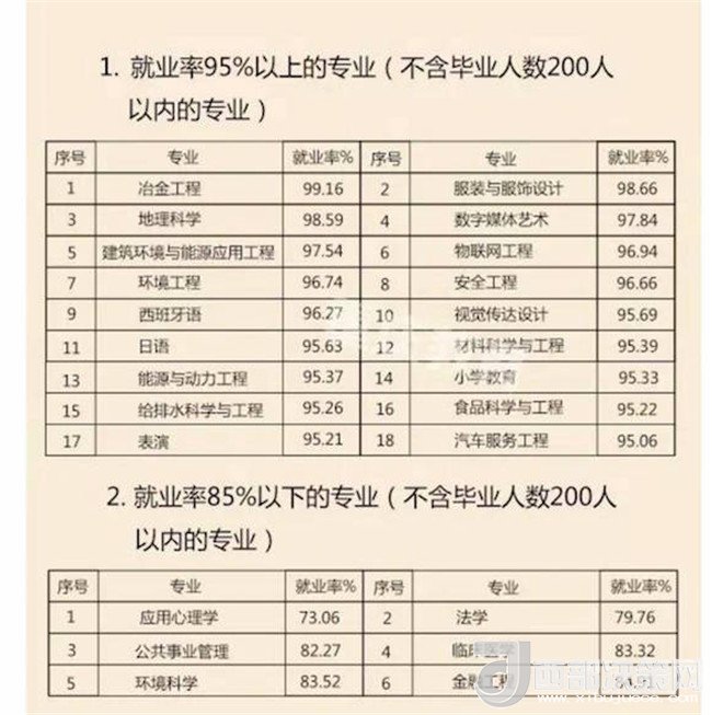 即將畢業(yè),你找到中意的工作了沒?近日,重慶市教委發(fā)布《重慶市2017屆普通高校畢業(yè)生就業(yè)情況報(bào)告》。據(jù)統(tǒng)計(jì),2017年,全市共有普通高校畢業(yè)生約21.49萬人,截至2017年8月31日,我市2017屆普通高校畢業(yè)生就業(yè)率為89.65%,與2016屆同比上升0.56%。記者了解到,控制工程專業(yè)、藥品質(zhì)量檢測(cè)技術(shù)、汽車服務(wù)與管理等專業(yè),其就業(yè)率達(dá)100%。哪個(gè)專業(yè)就業(yè)前景“低調(diào)卻奢華”?哪個(gè)專業(yè)只是“看上去很美”?趕緊往下看吧!