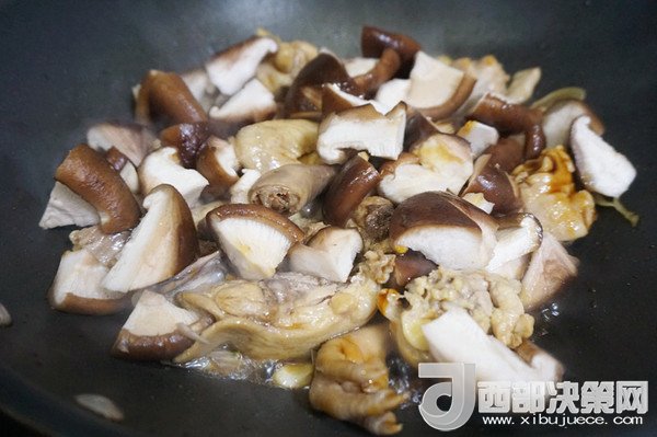 5、再放入香菇塊,加入沒(méi)過(guò)食材的開水。所有食材都倒入蘇泊爾電壓力鍋的內(nèi)膽中。
