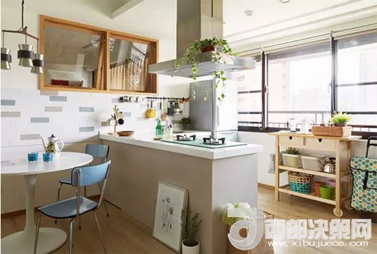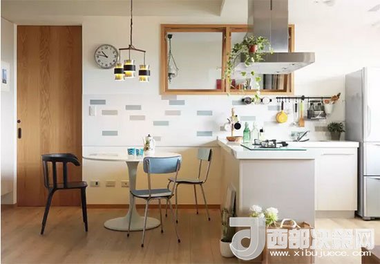 看得出臥室在哪兒?jiǎn)幔繘](méi)錯(cuò),臥室就在餐區(qū)和廚房的一側(cè),墻上的窗戶同樣也是為了增加采光和空氣的流通。