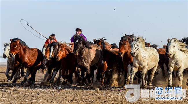 1月16日,在內(nèi)蒙古錫林浩特鳳凰馬場,當(dāng)?shù)啬撩駛冑愸橊劇?br />