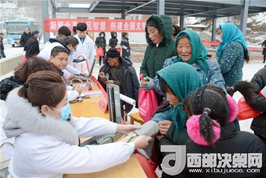 西部決策網(wǎng)-西部大開發(fā)訊(帥華鋒 通訊員 馬存福 楊兆康)大雪紛飛雪飄揚,過了臘八就是年。1月24日,由清水縣委宣傳部、文明辦、文廣局、縣委黨校、文化館、農(nóng)業(yè)局、縣醫(yī)院、中醫(yī)院、婦保站、文聯(lián)等單位組織開展的2018年文化科技衛(wèi)生“三下鄉(xiāng)”活動走進秦亭鎮(zhèn)全莊村。