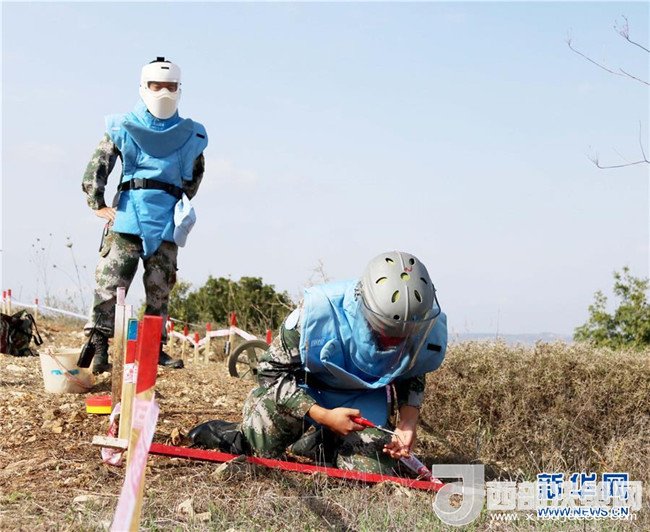 2017年11月8日,在黎巴嫩南部黎以邊境“藍(lán)線”附近的掃雷作業(yè)點(diǎn),中國(guó)工兵新作業(yè)手在組長(zhǎng)的指導(dǎo)下進(jìn)行掃雷作業(yè)。2017年10月初,中國(guó)維和部隊(duì)接到聯(lián)合國(guó)駐黎巴嫩臨時(shí)部隊(duì)(聯(lián)黎部隊(duì))任務(wù),要求清排一片面積超過(guò)1萬(wàn)平方米、埋有千余枚防步兵地雷的雷場(chǎng)。(董永康攝)