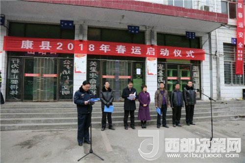 西部決策網(wǎng)-西部大開(kāi)發(fā)訊(帥華鋒 通訊員 馬存福 牛田園)2018年2月1日上午,甘肅康縣運(yùn)管局聯(lián)合交通、運(yùn)管、交警、路政、農(nóng)機(jī)等部門(mén),在康縣汽車站舉行了康縣2018年“春運(yùn)”啟動(dòng)儀式,正式拉開(kāi)了為期40天的春運(yùn)工作序幕??h委副書(shū)記邱曉旭、縣委常委、政法委書(shū)記蒙艷琴、公安局政委帥富奎出席儀式并講話,運(yùn)管局全體運(yùn)政人員、交警大隊(duì)全體民警、客運(yùn)企業(yè)管理人員及駕駛員等200余人參加了啟動(dòng)儀式。