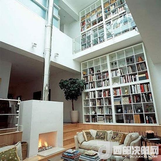 挑高的躍層空間,書架從上至下占據(jù)了兩層空間,顯得氣勢宏大,令人嘆服。