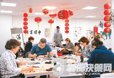 在比利時(shí)布魯塞爾的孔子學(xué)院,學(xué)員們練習(xí)中國(guó)書法。新華社記者葉平凡攝