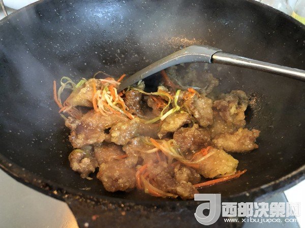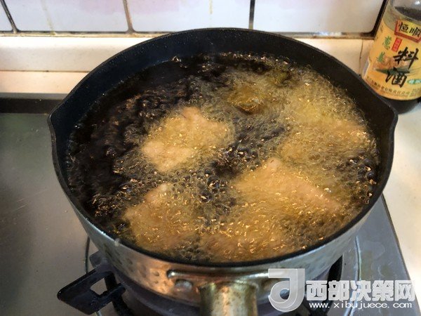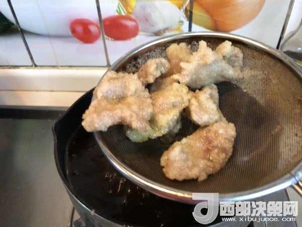 10.把油鍋加熱至八成熱后,把肉片復炸至外表發(fā)脆