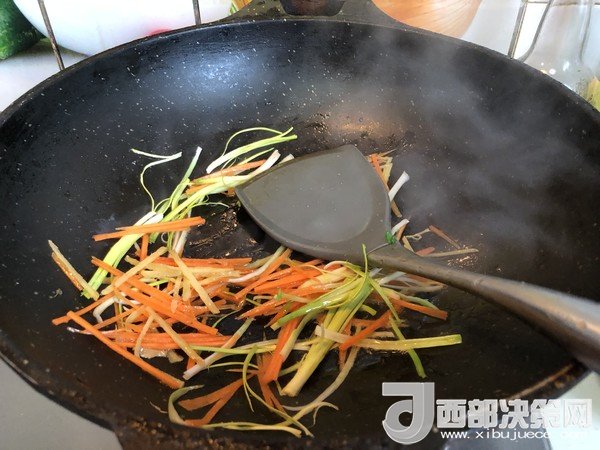 15.把炸好的肉片倒入,快速炒勻,可以撒點香菜葉,我家女兒不吃香菜