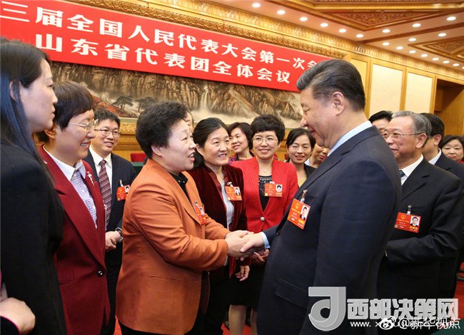 新華網(wǎng)北京3月8日電 8日上午,習(xí)近平到山東代表團(tuán)參加審議。正值“三八”國(guó)際勞動(dòng)?jì)D女節(jié),習(xí)近平代表黨中央向女代表、女委員、女工作人員及全國(guó)各族各界婦女同胞,致以節(jié)日的祝賀和誠(chéng)摯的祝福。