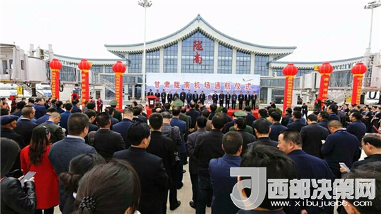 西部決策網(wǎng)——西部大開(kāi)發(fā)訊(帥華鋒 通訊員 馬存福 馬智泉)2018年3月25日上午11點(diǎn)20分甘肅隴南成縣機(jī)場(chǎng)迎來(lái)首航!一架從重慶飛來(lái)的華夏航空龐巴迪CRJ900客機(jī)穿越云層,呼嘯著俯沖而下,平穩(wěn)降落在隴南成縣機(jī)場(chǎng),這標(biāo)志著隴南成縣機(jī)場(chǎng)正式通航。剎那間,機(jī)場(chǎng)一片歡呼聲和鼓樂(lè)聲,隴南全市人民多年的飛天夢(mèng)想終于實(shí)現(xiàn)了!