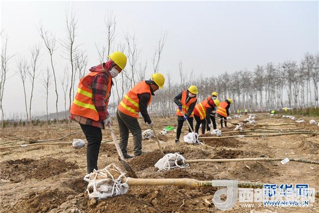 工人在河北雄安新區(qū)“千年秀林”工程施工現(xiàn)場(chǎng)施工(3月21日攝)。新華社記者 牟宇 攝