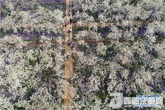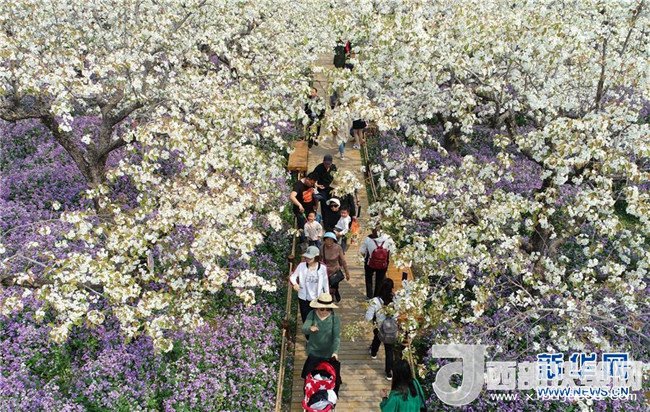 清明時(shí)節(jié),在江蘇省宿遷市三臺(tái)山森林公園梨香滿(mǎn)園景區(qū),白色的梨花和紫色的二月蘭爭(zhēng)相綻放,吸引眾多游客前來(lái)踏青賞花。 新華社發(fā)(周?chē)?guó)強(qiáng) 攝)