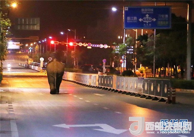 4月7日晚,云南省普洱市思茅區(qū)附近山林一頭野生亞洲象闖入中心城區(qū),不僅大搖大擺地在公路上逆行,還破壞了部分道路交通設(shè)施。當(dāng)?shù)厣止搽S即對這名“闖入者”進行全程監(jiān)控、實時預(yù)警,避免了“人象沖突”。4月8日凌晨4時許,在現(xiàn)場工作人員的引導(dǎo)下,這頭亞洲象離開城區(qū)返回附近森林。新華社發(fā)(呂禾攝)