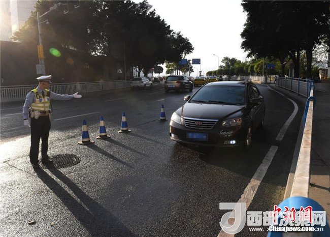 重慶市交巡警總隊(duì)秩序支隊(duì)相關(guān)負(fù)責(zé)人表示,經(jīng)多方實(shí)地勘查、試驗(yàn)檢測(cè),在環(huán)道內(nèi)讓車(chē)輛逆行變道,減少環(huán)道內(nèi)車(chē)輛交織量疊加,從而提升交通樞紐運(yùn)轉(zhuǎn)率這種方式在全國(guó)屬首次。周毅攝