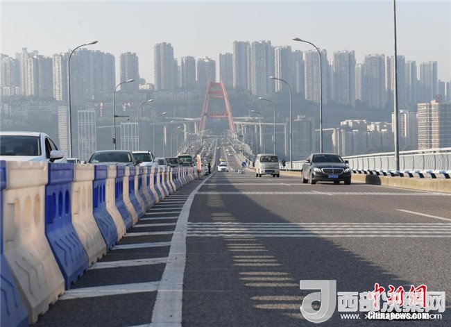 當(dāng)日,重慶開(kāi)通全國(guó)首創(chuàng)環(huán)道內(nèi)順逆融合車(chē)道,不僅是向時(shí)間、空間要通行率,也是在環(huán)道形成的“順時(shí)針”和“逆時(shí)針”兩種通行方式,共同存在的“共享位移轉(zhuǎn)換道”基礎(chǔ)上提高車(chē)流量通行率。
