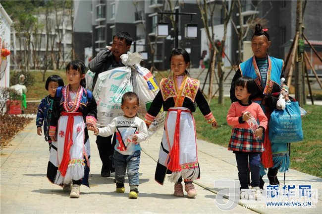 在今年的易地扶貧搬遷中,家住貴州省安順市西秀區(qū)巖臘鄉(xiāng)龍?zhí)洞甯裆趁缯?歲女孩吉雪,與家人一起從缺水、耕地少、海拔高的格沙苗寨搬遷至50公里外的西秀區(qū)工業(yè)園區(qū)易地扶貧搬遷安置點(diǎn)——彩虹社區(qū)。從4月21日夜開始,吉雪便開始忙著收拾自己的書包,準(zhǔn)備隨同爺爺、奶奶、妹妹一起離開深山苗寨。