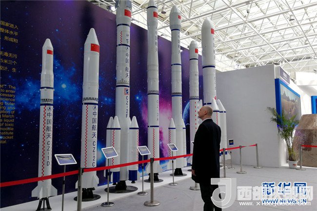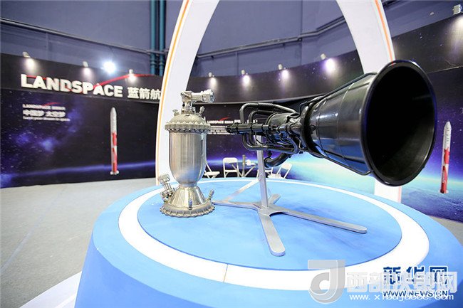 現(xiàn)場展示的藍(lán)箭航天商業(yè)運載火箭發(fā)動機等比例模型。新華網(wǎng)才萌攝
