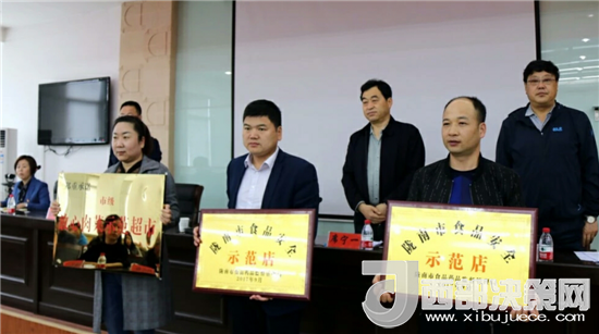會(huì)上,席寧一宣讀了《隴南市食藥監(jiān)局關(guān)于命名2017年市級(jí)食品安全示范街示范店和示范學(xué)校食堂的通知》;李寶成宣讀了《隴南市食藥監(jiān)局關(guān)于命名2017年市級(jí)放心肉菜示范超市的通知》;為獲得全市2017年度食品安全示范店、農(nóng)產(chǎn)品示范超市的兩當(dāng)縣開(kāi)元超市(農(nóng)貿(mào)市場(chǎng)店)、兩當(dāng)縣秦南農(nóng)產(chǎn)品電商體驗(yàn)中心、兩當(dāng)縣川渝九品火鍋店頒發(fā)了獎(jiǎng)牌;城關(guān)鎮(zhèn)、金洞鄉(xiāng)、農(nóng)牧局、教育局分別作了交流發(fā)言;縣食安辦主任、食藥局長(zhǎng)彭小蘭作了工作報(bào)告;與各鄉(xiāng)鎮(zhèn)、工作站、食安委各成員單位簽訂了《2018年兩當(dāng)縣食品藥品安全目標(biāo)管理責(zé)任書(shū)》。