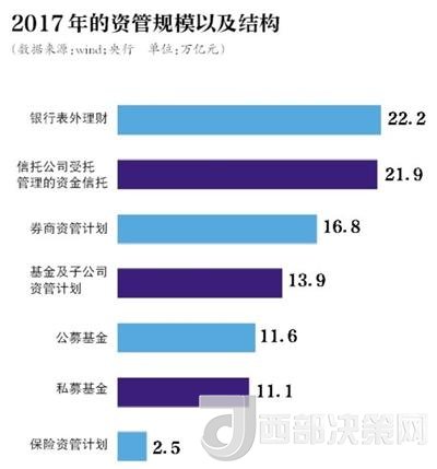 央行數(shù)據(jù)顯示,近年來,我國金融機構(gòu)資管業(yè)務(wù)規(guī)模不斷攀升,截至2017年末,不考慮交叉持有因素,總規(guī)模已達百萬億元。其中,銀行表外理財產(chǎn)品資金余額為22.2萬億元,信托公司受托管理的資金信托余額為21.9萬億元。同時,互聯(lián)網(wǎng)企業(yè)、各類投資顧問公司等非金融機構(gòu)開展資管業(yè)務(wù)也十分活躍。