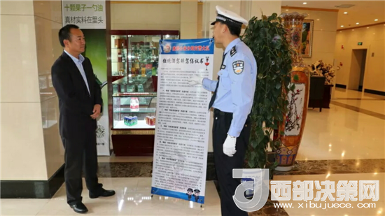 西部決策網(wǎng)——西部大開發(fā)訊(帥華鋒 通訊員 馬存福 漆小燕)酒后駕車害人深,酒前宣傳可預(yù)防。為進(jìn)一步倡導(dǎo)文明、安全行車,培養(yǎng)駕駛?cè)肆己玫鸟{駛習(xí)慣,最大限度的預(yù)防和減少酒后駕駛交通違法行為,營造“拒絕酒后駕駛”濃厚的宣傳氛圍。近日,甘肅天水公安交警部門結(jié)合全省正在開展的“三反一查”綜合治理以及“七個(gè)一律”工作安排,在轄區(qū)酒店、賓館投放“拒絕酒駕”宣傳立式海報(bào)、溫馨提示卡,將酒駕的危害、法律法規(guī)宣傳前移到了就餐前,讓市民在餐桌上筑起一道法律安全防線。