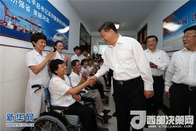 2016年7月28日,中共中央總書記、國家主席、中央軍委主席習近平到河北唐山市調(diào)研考察。這是習近平在唐山市截癱療養(yǎng)院看望慰問截癱傷員。 新華社記者 蘭紅光 攝