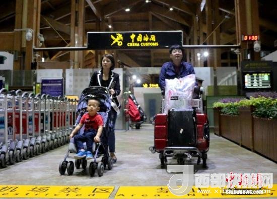 海南今年5月1日起實施59國人員入境旅游免簽政策,圖為當日首批免簽游客抵三亞。王曉斌 攝