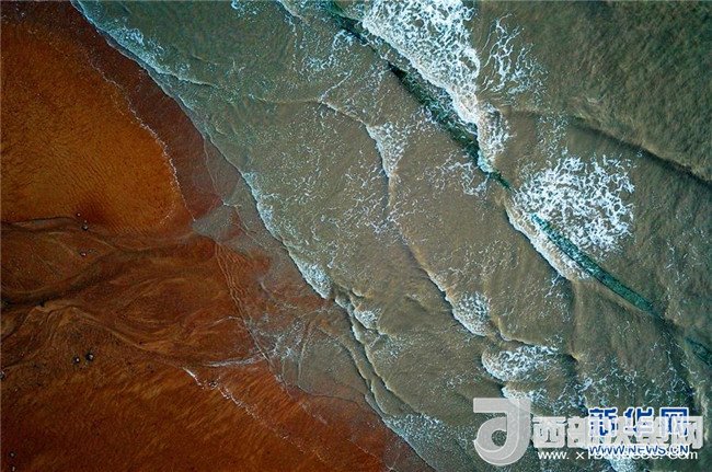 5月16日無人機航拍的霞浦沿海灘涂海浪沖刷沙灘的美景。