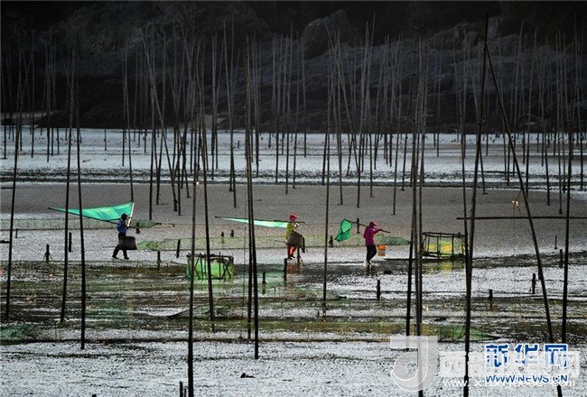 福建省寧德市霞浦縣海岸線綿延曲折,灘涂風(fēng)光旖旎,隨著季節(jié)和天氣變化呈現(xiàn)出不同景致,吸引許多游客前來欣賞美景。2017年,霞浦接待游客333.7萬人次,旅游總收入25億元。新華社記者 魏培全 攝
