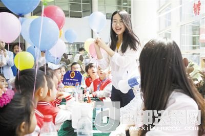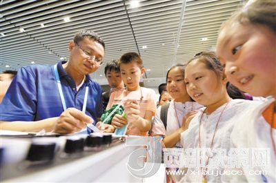 圖為2018年全國(guó)科技活動(dòng)周暨北京科技周活動(dòng)主場(chǎng),國(guó)家納米科學(xué)中心任紅軒教授為來(lái)自張家口的學(xué)生展示“納米夢(mèng)工坊”便攜納米科普教具,讓學(xué)生感受納米科技魅力。洪星 攝