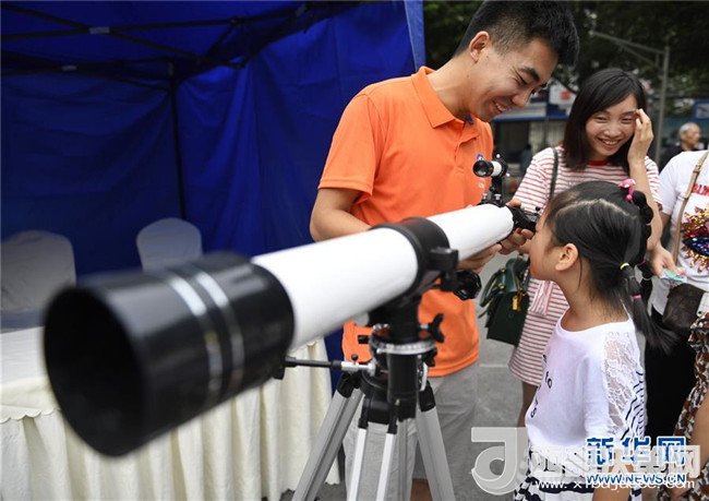 5月20日,一名小朋友在中科院成都分院活動現(xiàn)場體驗望遠(yuǎn)鏡。