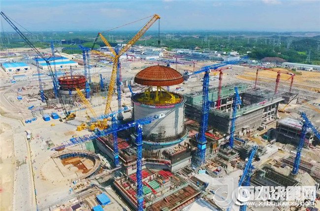 5月23日,我國自主三代核電“華龍一號”示范項目——中國廣核集團防城港核電二期工程3號機組穹頂?shù)跹b順利完成。這標(biāo)志著作為英國“華龍一號”核電項目參考電站的防城港3號機組從土建施工階段全面轉(zhuǎn)入設(shè)備安裝階段。