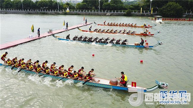 5月26日,參賽龍舟在浙江省溫州市會(huì)昌湖水面上比拼。當(dāng)日,浙江溫州第五屆龍舟聯(lián)賽的一場(chǎng)比賽在會(huì)昌湖水上公園龍舟基地舉行。眾多龍舟同場(chǎng)競(jìng)技,上演了精彩的水上比拼。新華社發(fā)(蘇巧將攝)