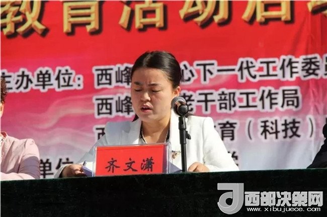 啟動(dòng)儀式由西峰區(qū)人民政府副區(qū)長(zhǎng)、關(guān)工委副主任齊文瀟主持,并作“傳承紅色基因,爭(zhēng)做時(shí)代新人”主題教育動(dòng)員講話(huà)。她指出,開(kāi)展“傳承紅色基因,爭(zhēng)做時(shí)代新人”主題教育活動(dòng),是為貫徹落實(shí)習(xí)近平新時(shí)代中國(guó)特色社會(huì)主義思想對(duì)關(guān)心下一代工作提出的新要求作出的重大部署和安排,主要目的在于引導(dǎo)廣大青少年認(rèn)清自己的“根”和“魂”,教育引導(dǎo)廣大青少年從紅色基因中汲取道德滋養(yǎng)和文化精髓,自覺(jué)踐行社會(huì)主義核心價(jià)值觀(guān),堅(jiān)定理想信念,為實(shí)現(xiàn)偉大復(fù)興的中國(guó)夢(mèng)做出應(yīng)有的貢獻(xiàn)。