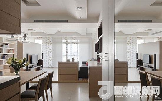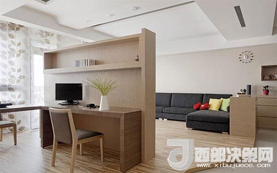 設(shè)計師打開原客廳后方的小房間格局,再以半高木柜墻體形塑穿透感空間分野。