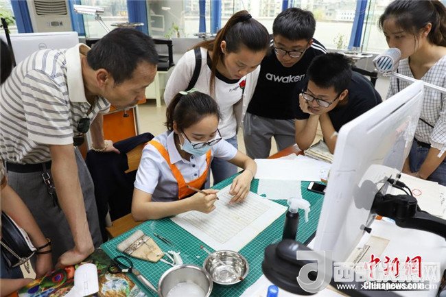 古籍修復(fù)技藝吸引民眾圍觀。中新社發(fā)瞿宏倫攝