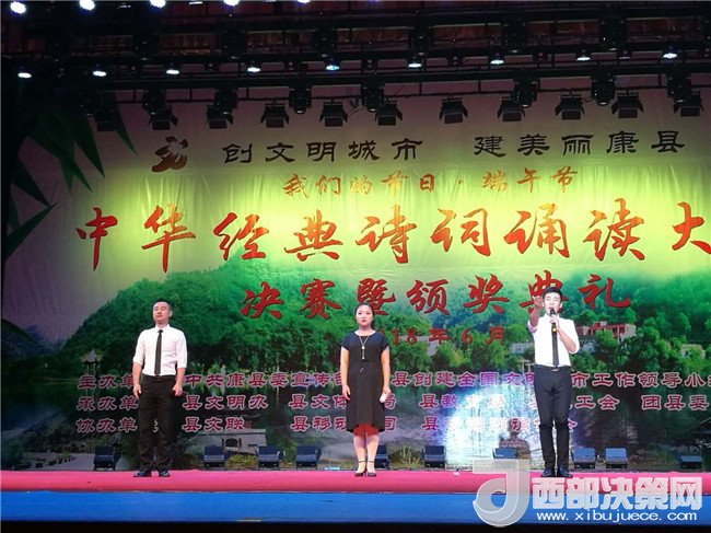 西部決策網(wǎng)——西部大開發(fā)訊(帥華鋒 通訊員 張存益 杜寧生)為紀(jì)念愛國詩人屈原,進一步弘揚傳承中華民族優(yōu)秀傳統(tǒng)文化,豐富全縣人民群眾的文化生活,助推全國文明城市創(chuàng)建,6月12日,甘肅康縣舉行以“創(chuàng)建文明城市,共建美麗康縣”為主題的“我們的節(jié)日·端午節(jié)”中華經(jīng)典詩詞誦讀大賽決賽暨頒獎典禮。康縣四大班子領(lǐng)導(dǎo)和1000余名觀眾一同觀看了決賽盛況和精彩對決。