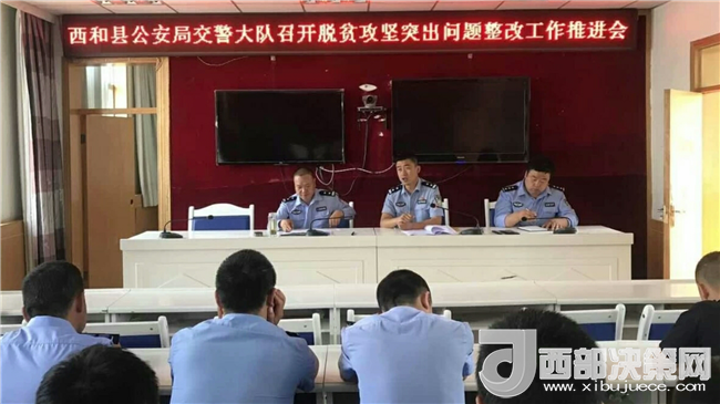西部決策網(wǎng)——西部大開發(fā)訊 (帥華鋒 通訊員 馬存福 蘇娟) 6月14日上午,甘肅西和縣公安局交警大隊(duì)組織全體精準(zhǔn)扶貧幫扶工作人員在大隊(duì)四樓會(huì)議室召開脫貧攻堅(jiān)突出問題整改工作推進(jìn)會(huì)。