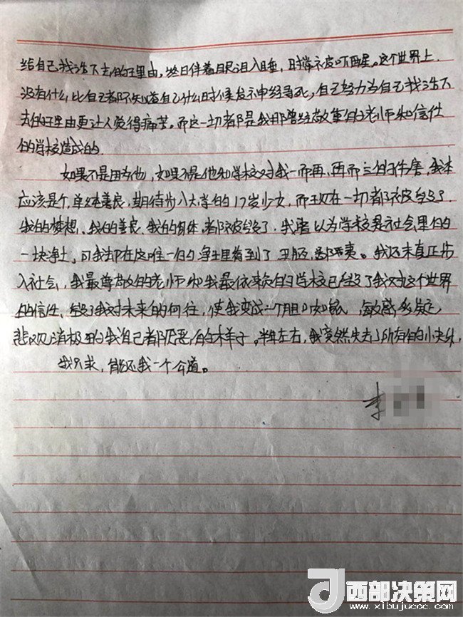 在李某奕覺得,自己并未做錯什么,學(xué)校寧要讓她轉(zhuǎn)校也不調(diào)換一名老師,這對她來講不公平。從此她開始焦慮、煩躁、夜不能寐,一直靠安眠藥睡眠,以至后來不能正常上課。她一直想要一個公道,直至她跳樓自殺也未能如愿。