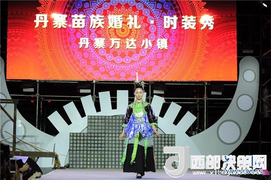 7月2日,在貴州省丹寨縣萬(wàn)達(dá)小鎮(zhèn),模特在展示民族服飾。