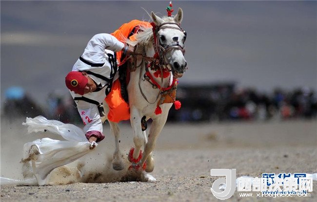 當(dāng)日,西藏阿里地區(qū)在獅泉河鎮(zhèn)舉行賽馬競(jìng)技大賽,比賽項(xiàng)目有騎馬拾哈達(dá)、撿茶磚、騎馬射箭、馬術(shù)表演等,共有150名農(nóng)牧民選手參加比賽,吸引了2萬(wàn)余名觀眾前來(lái)觀看。新華社記者張汝鋒攝