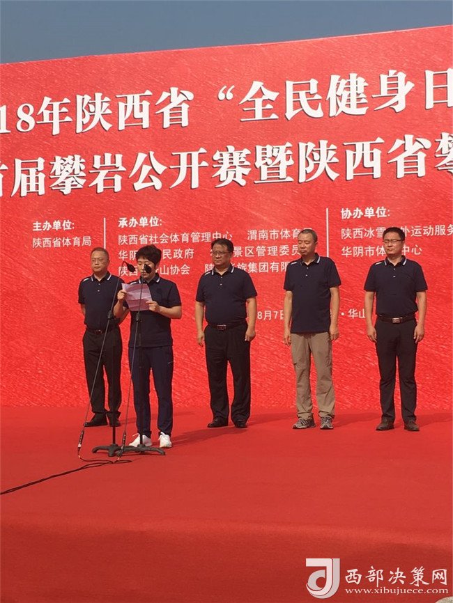 陜西省社會體育管理中心主任田凱、陜西省登山協(xié)會主席陳錚、渭南市體育局副局長王曉燕、陜西華山旅游集團有限公司副總經(jīng)理趙江峰、華陰市體育中心主任潘飛出席本次活動開幕式。