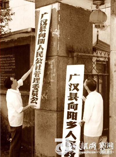 1980年,向陽(yáng)在全國(guó)率先摘下人民公社牌子。(廣漢市委宣傳部供圖)