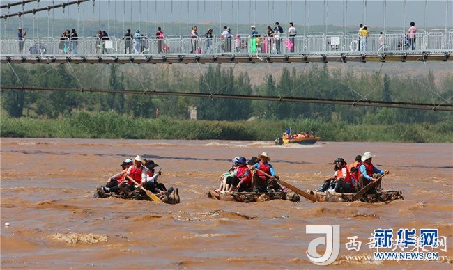 8月22日,游客在中衛(wèi)市沙坡頭旅游景區(qū)乘坐羊皮筏子游覽。沙坡頭旅游景區(qū)因地制宜發(fā)展沙漠旅游,旺季日接待游客量達(dá)兩萬(wàn)人次。新華社記者伍婧丹攝