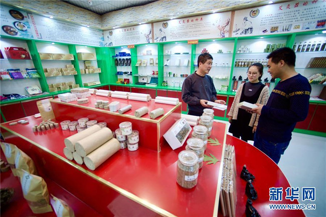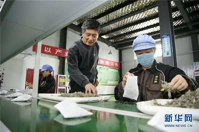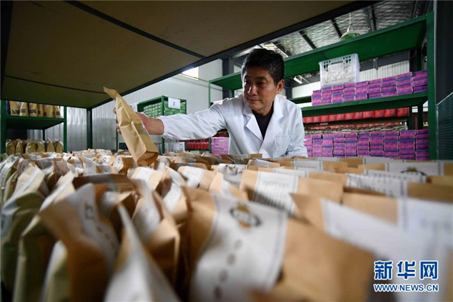 林玉清在寧夏固原市西吉縣寧夏澤艾堂生物科技有限公司查看艾草產(chǎn)品(8月30日攝)。來(lái)自福建莆田的林玉清2017年3月在西吉縣成立寧夏澤艾堂生物科技有限公司,依托西吉縣優(yōu)質(zhì)的艾草種植條件,采用“公司+合作社+農(nóng)戶”的訂單農(nóng)業(yè)合作模式,與吉強(qiáng)、新?tīng)I(yíng)等鄉(xiāng)鎮(zhèn)種植專(zhuān)業(yè)合作社合作建成艾草種植基地11個(gè)、推廣種植艾草6000畝,為當(dāng)?shù)厝罕娒撠氈赂讳伨托侣纷印P氯A社記者郭緒雷攝